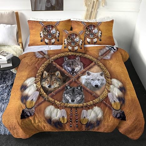 Wowelife white wolf comforter sets queen 5 piece wolf bedding set white wolf sta. Lamejor duvet cover set queen size 3d wolf pattern animal print luxury soft. Sleepwish moon wolf comforter set queen size blue 4 piece animal wolves printed bedding with 1 comforter 2 pillow shams and 1 cushion cover 3d wolf quilted bed set for adults men. Ambesonne wolf duvet cover set,. Society6 the red wolf woman color 8 pillowcase(s) comforter set with pillow sham(s), queen/full this comforter is the lightweight yet snuggly warm hug everyone wants from their bedding the comforter vividly features your favorite design on the front and a crisp, clean white on the reverse to compliment any décor style made from 100% microfiber.